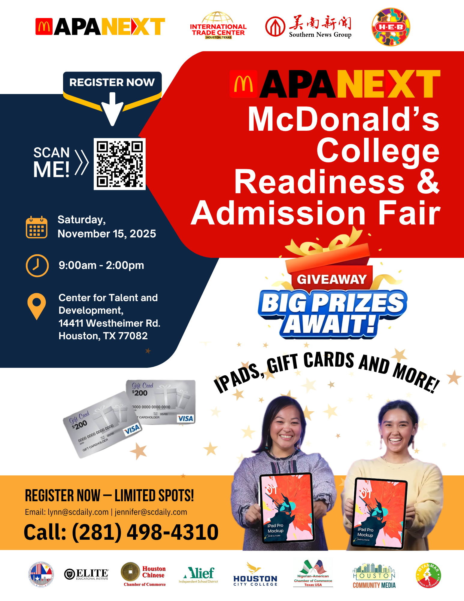 November 15th College Workshops and Scholarship giveaways. All ages are welcome. iPad AND AMAZON GIFTCARD giveaways!