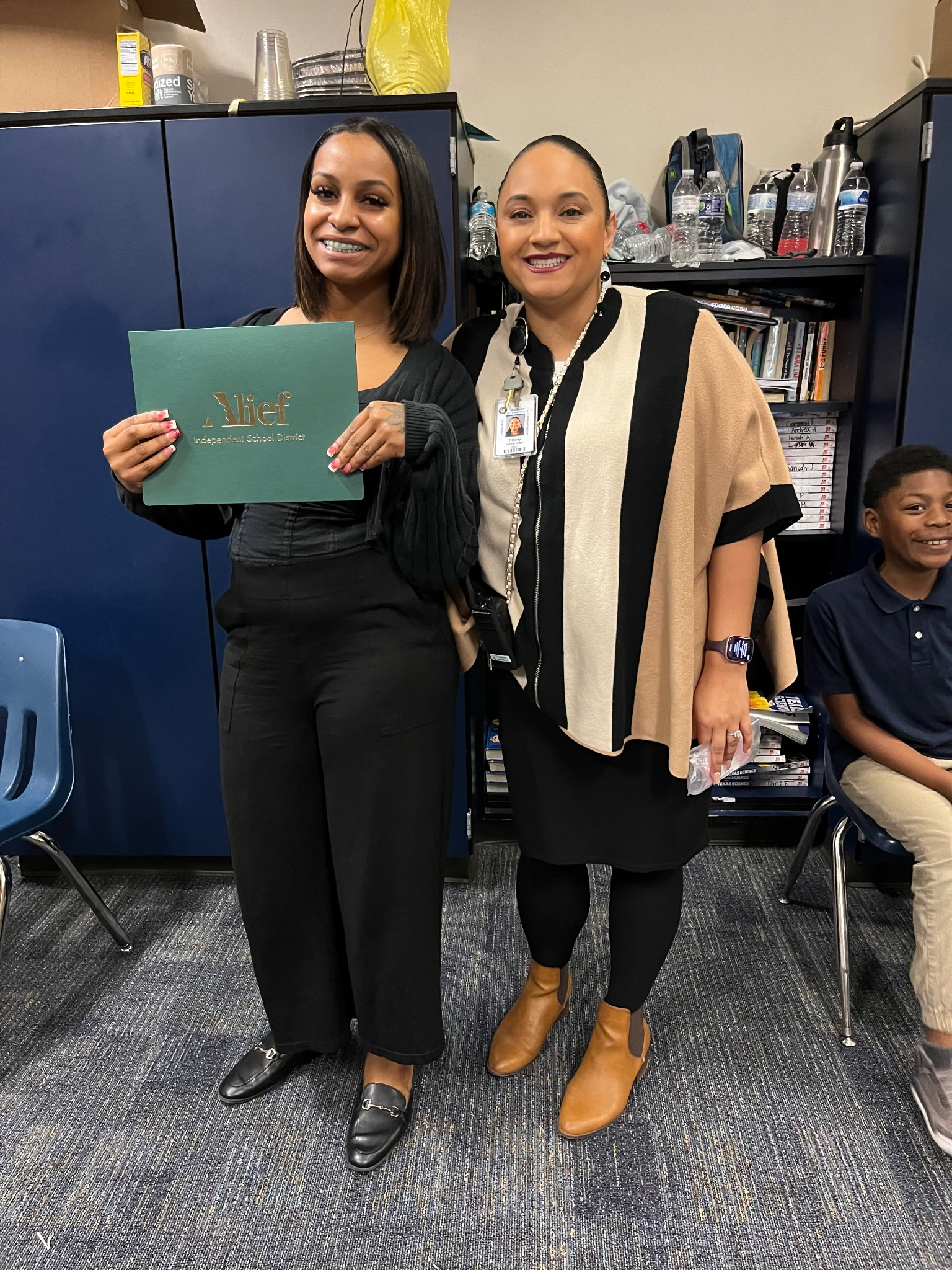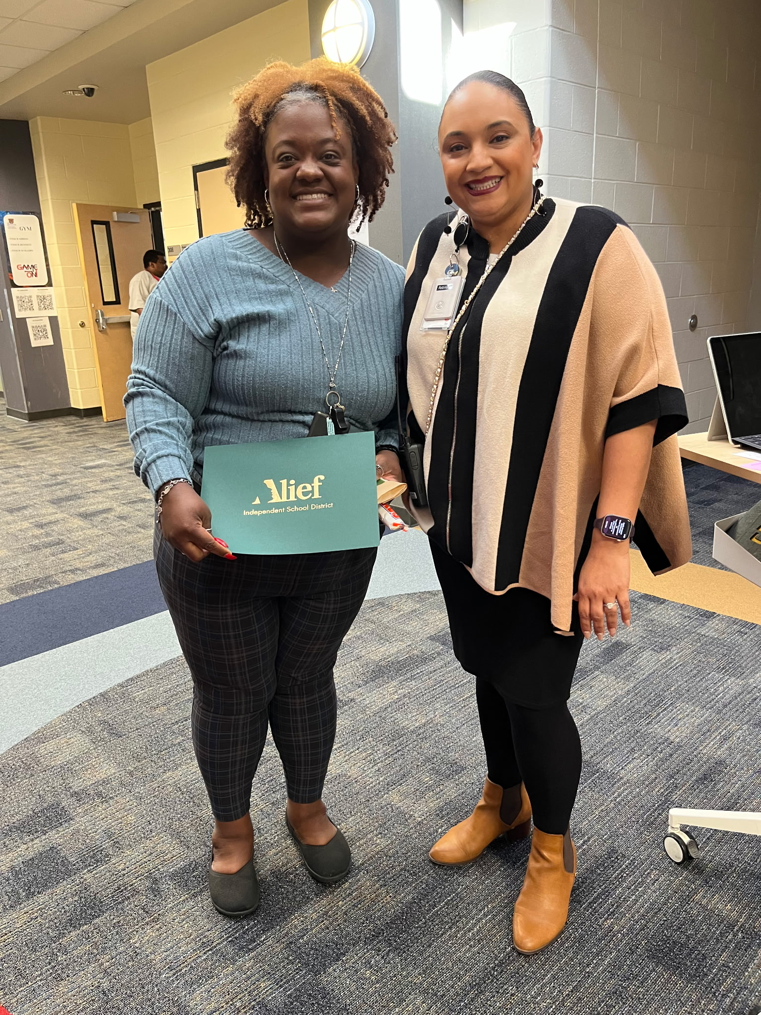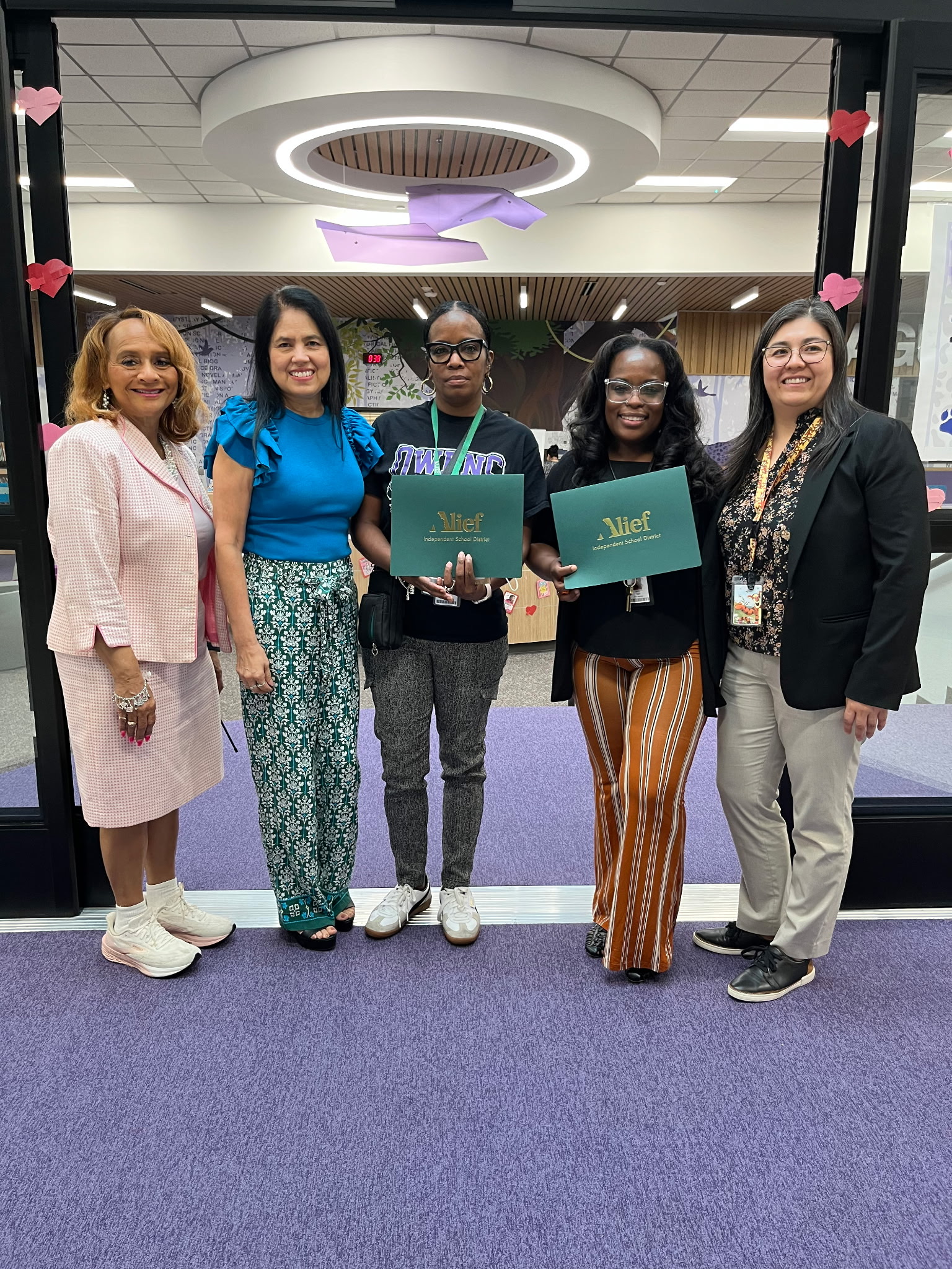 One of Kimberly's most significant recent accomplishments—and a milestone for the district—was securing an extraordinary $350,000 grant from the Houston Endowment. This substantial funding represents a major investment in Alief ISD’s future and will play a transformative role in reducing the number of uncertified teachers across the district. The grant provides scholarships and incentives to help teachers earn certification efficiently, while also eliminating financial barriers tied to certification programs and required exams. This achievement not only reflects her leadership and strategic vision but also marks an important step forward in strengthening the district’s educator pipeline.